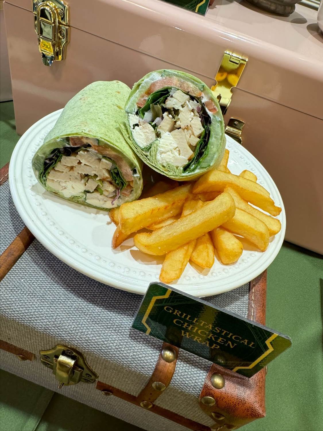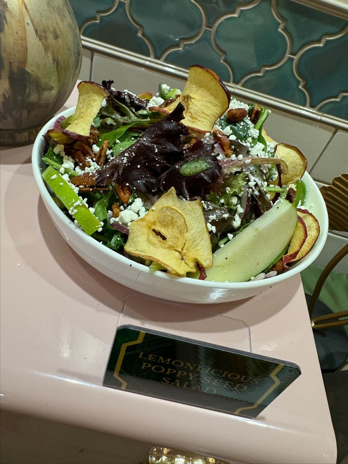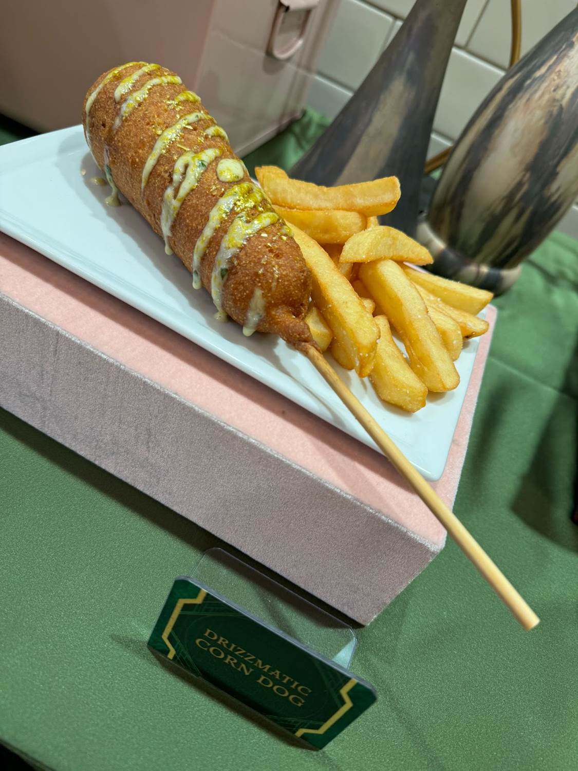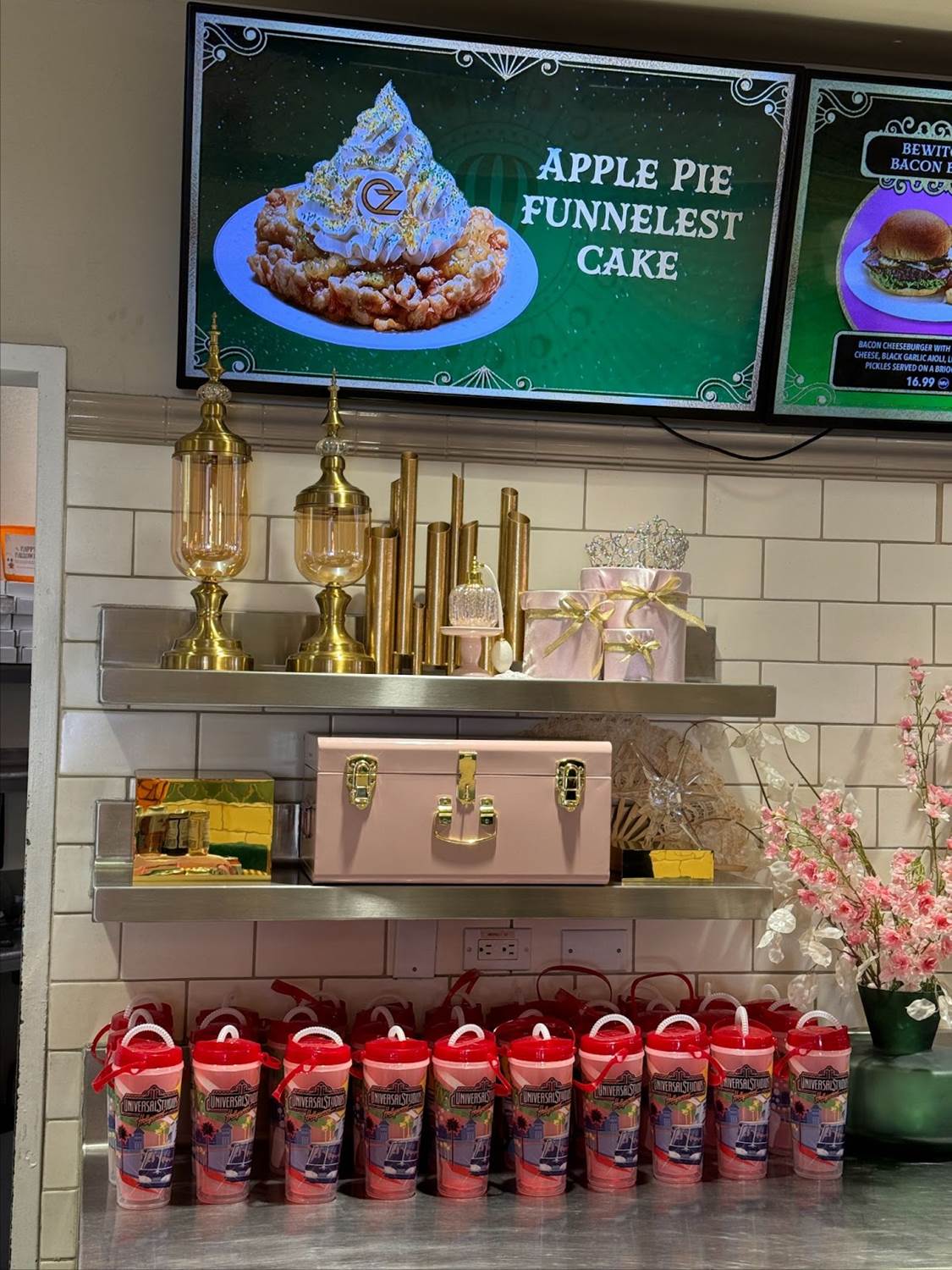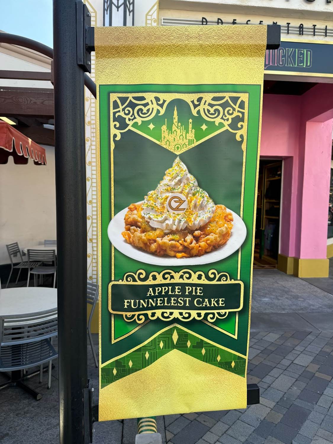 A special Wicked menu offers food items such as the Bewitching Bacon Burger, Grilltastical Chicken Wrap, Lemonlicious Poppy Seed Salad, Drizzmatic Corn Dog, Roastified Corn Flatbread and Apple Pie Funnelist Cake. There are also two different alcoholic beverages (the Ozmopolitan and Spellbinding Collins) and one non-alcoholic drink (Ozdust Punch) available at Hollywood & Dine.