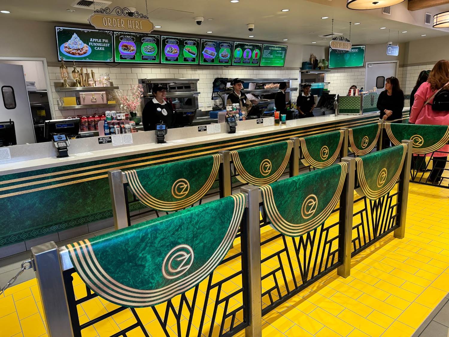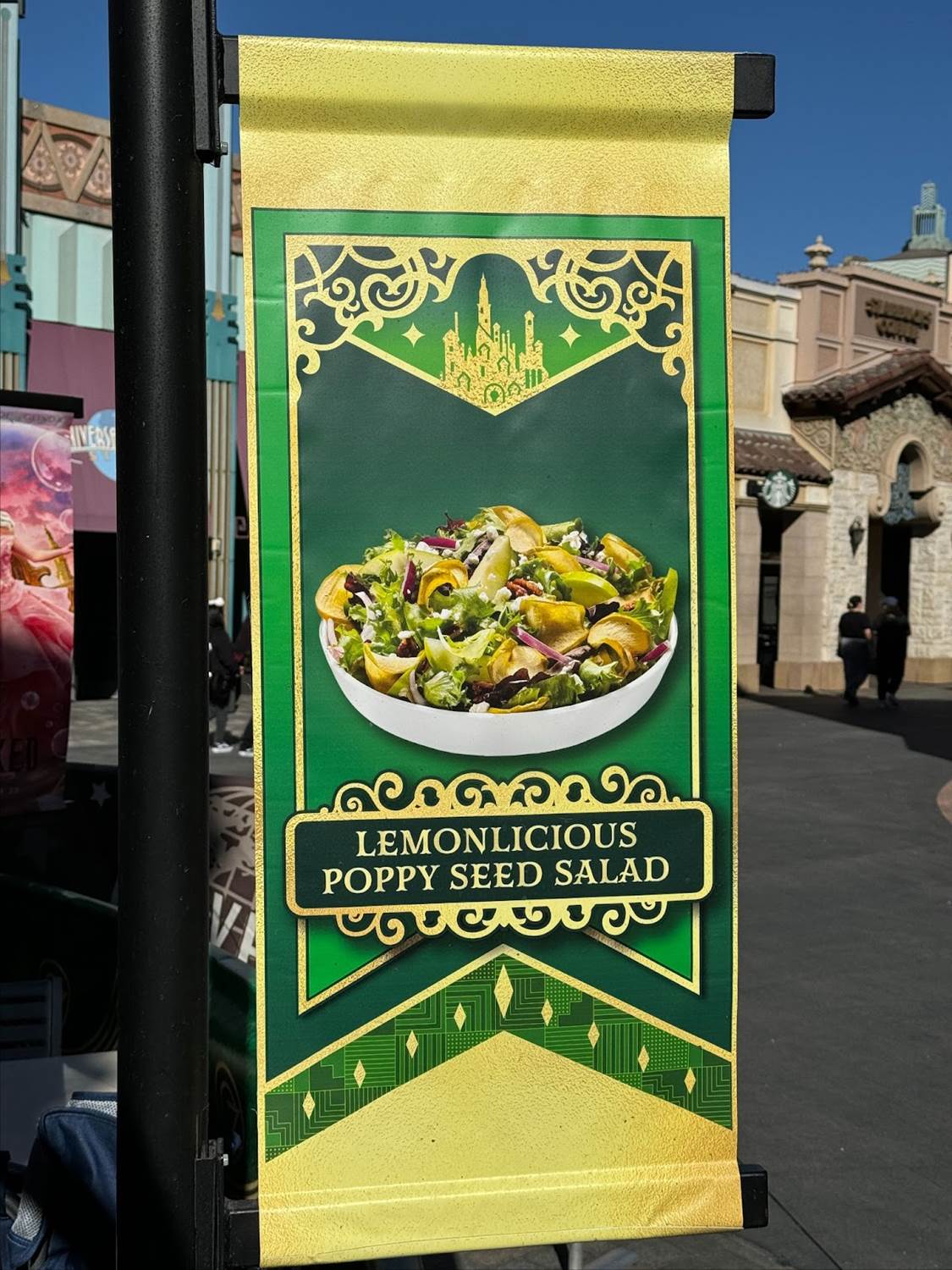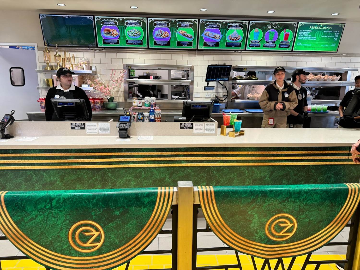 Inside Universal Studios Hollywood itself, the Hollywood & Dine counter-service restaurant is surrounded by Wicked banners, with even more decor themed to the movie in the location’s interior.