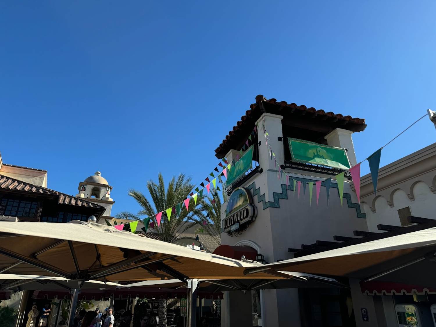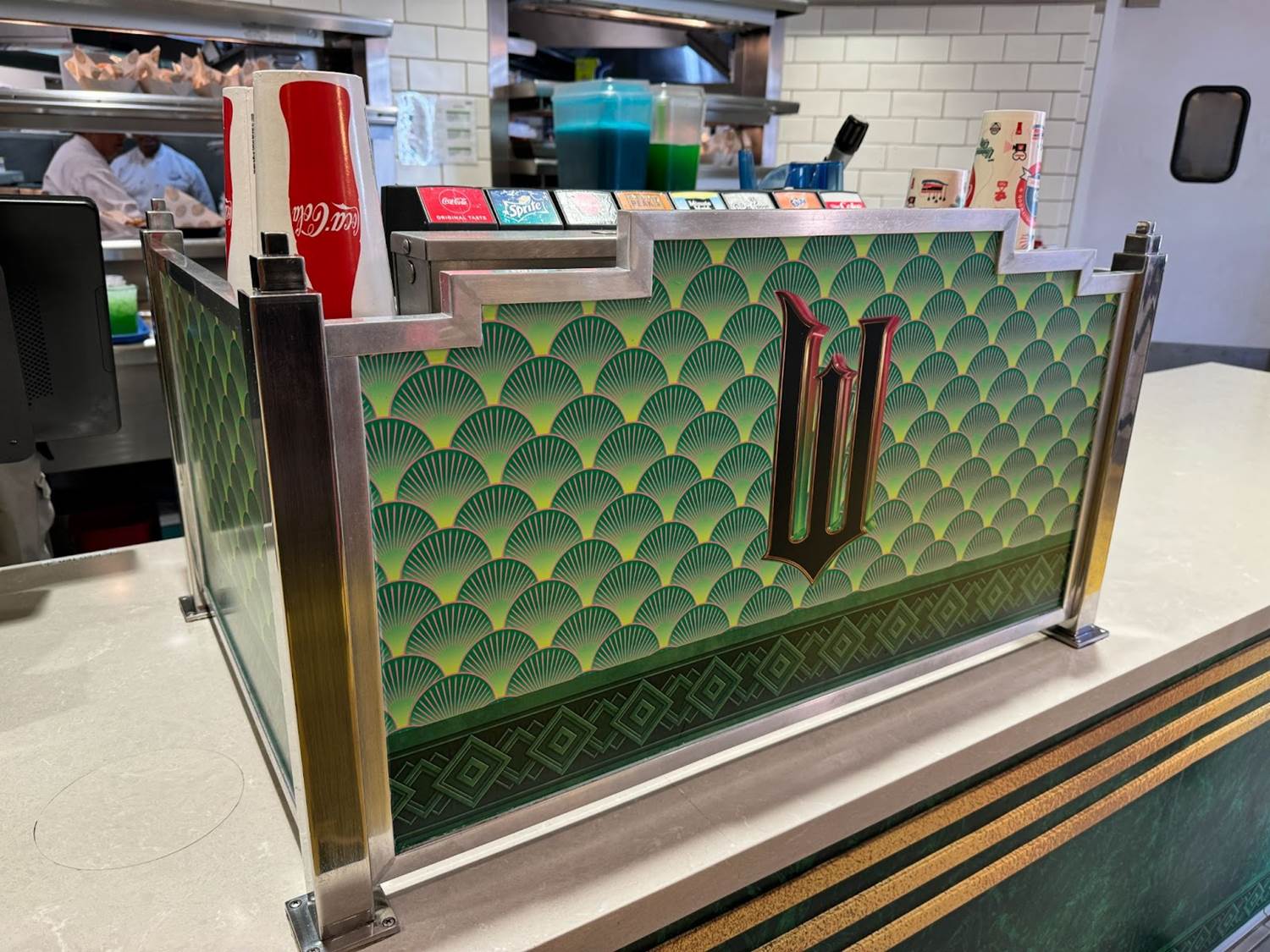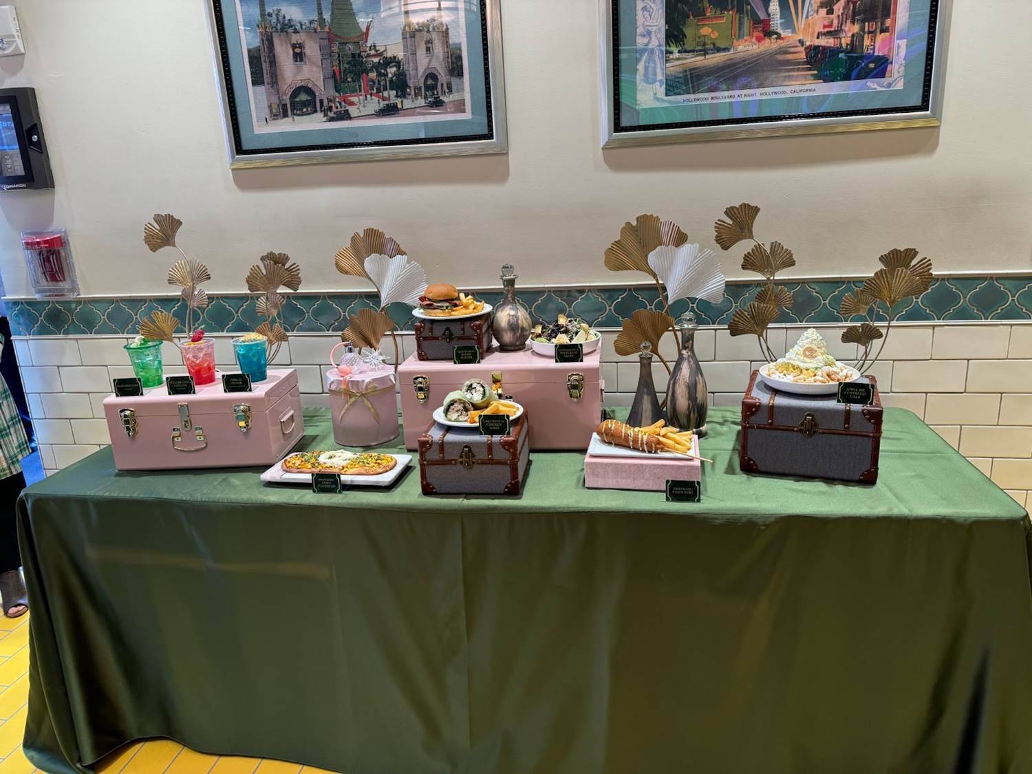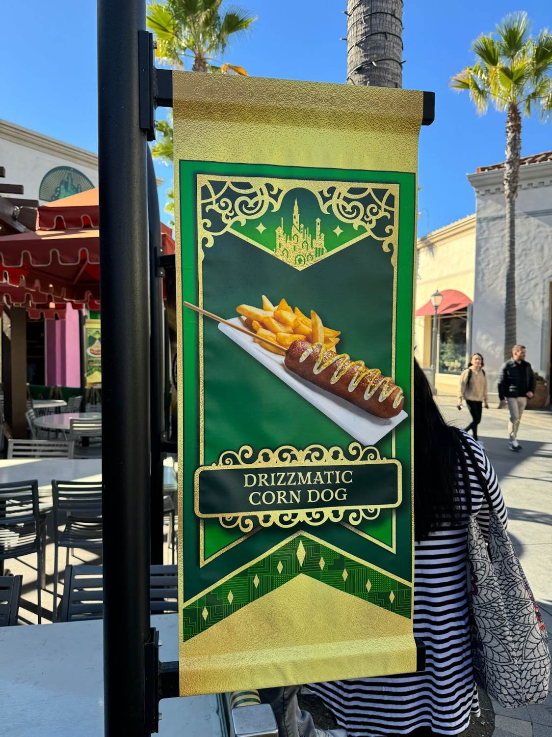 Inside Universal Studios Hollywood itself, the Hollywood & Dine counter-service restaurant is surrounded by Wicked banners, with even more decor themed to the movie in the location’s interior.