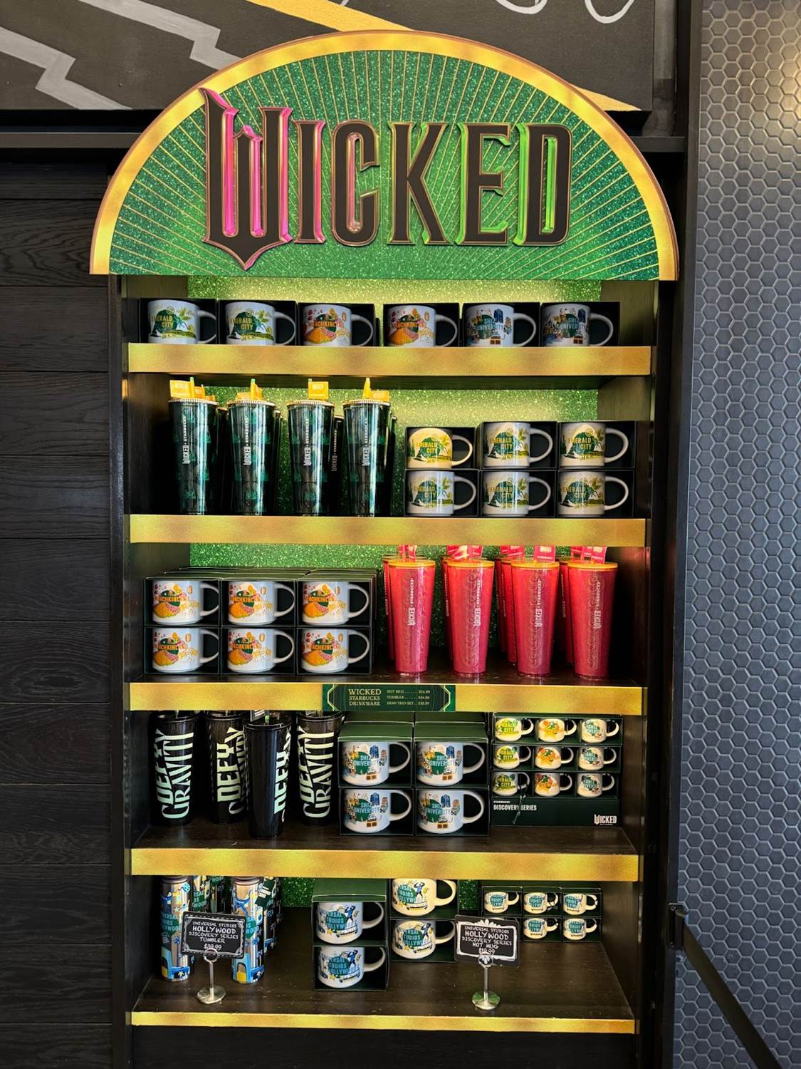 Even Starbucks is getting in on the action with exclusive Wicked mugs only available at Universal Parks. In Hollywood, they’re at both the Universal Studios and CityWalk locations.