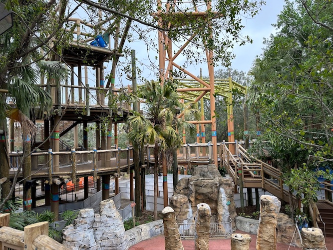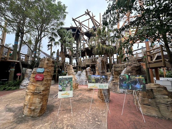 The hands-on area will feature many places for guests to play, including a refreshed drop tower experience called Tree Top Drop, water play areas, climbing gyms, and incorporated animal habitats.