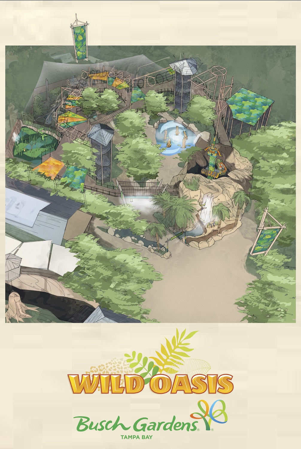 This Spring, Wild Oasis will bring guests into an immersive world of animal exploration at Busch Gardens Tampa. The area will bring a refreshed and re-imagined version of the former Jungala area that will allow adventurers of all ages to embrace and explore the sounds and sights of the rainforest.