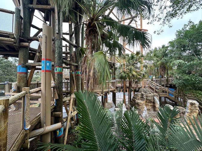 After the presentation, it was time to get into our hard hats and take a walk through Wild Oasis. Stepping inside, the area is still heavily under construction with much to be done prior to its scheduled Spring opening. As you enter into Wild Oasis, you’ll be surrounded by play structures and water features that will allow guests to explore up to four stories high. The bravest of guests will be able to crawl through a net tunnel between different lookouts.