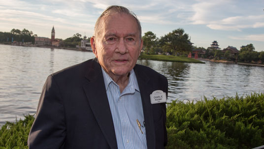 Having covered the opening of Disneyland, Charlie Ridgway joined the park's publicity staff in 1963. From there he moved out east and played a crucial public relations role for the construction and opening of Walt Disney World. He also coordinated media coverage for Epcot, Disney's Hollywood Studios, and Disneyland Paris. Among his most recognizable projects was supervising the last image taken of Walt Disney at Disneyland to the photo of 3,000 cast members that graced the cover of LIFE magazine. He retired in 1994 and was named a Disney Legend in 1999.