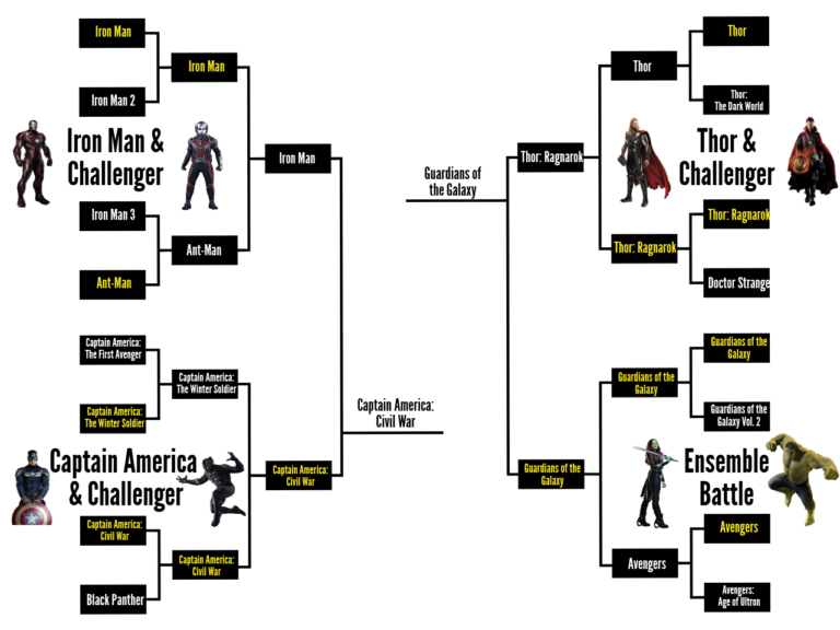 Well it's been fun, folks! Yesterday ended our 5th annual Mouse Madness tournament, with our champion taking home the title of best film of the Marvel Cinematic Universe…so far. You've faithfully voted and let your voices be heard, and ultimately you've selected this group of individuals as our champions: