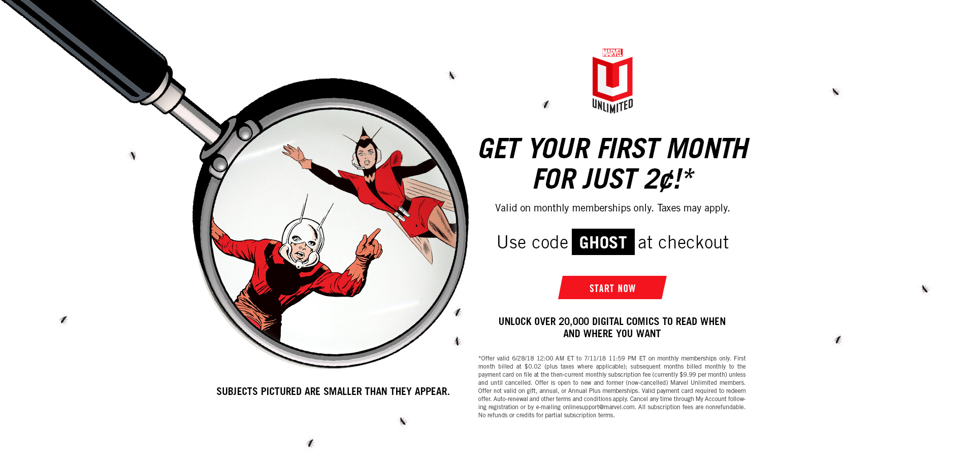 With Marvel's Ant-Man and the Wasp currently in theatres, Marvel Unlimited is celebrating by shrinking the price of their service for your first month.